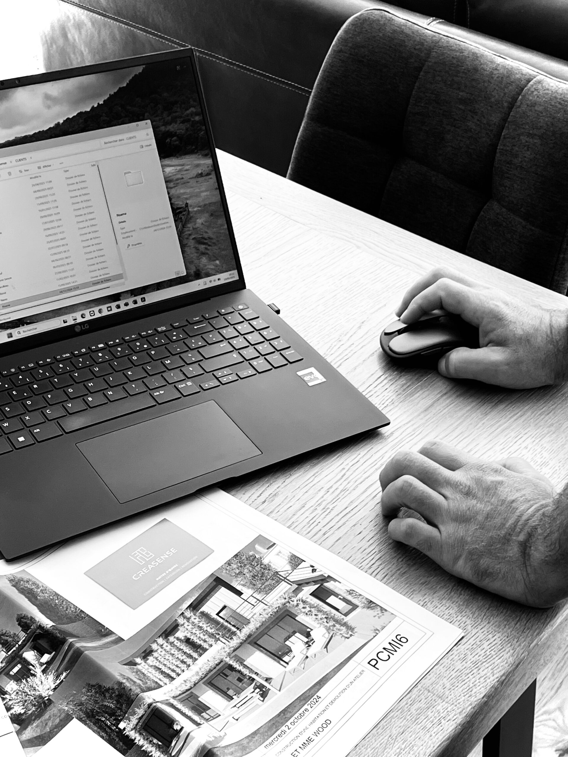 - La prise de contenu professionnelle : Photos de chantiers, portraits, mises en situation, détails architecturaux et visuels lifestyle pour Linkedin.